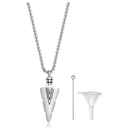 Honor a loved one’s memory with the Guardian Arrow Cremation Necklace— a striking arrowhead-shaped necklace designed to hold a small amount of ashes or other meaningful keepsakes. Inspired by the arrow as a symbol of guidance and courage, this pendant serves as a powerful personal tribute you can wear close to your heart.